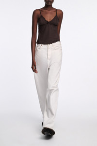 The camisole is made from technical jersey and has natural ruffle trim. The cami can be worn as a set with the matching shorts. Material & Care - 73 % Polyamide, 27 % Elastane - Technical jersey camisole - Baby overlock edge finishing - Small bow at the center front - Adjustable straps - Hand wash cold / Machine wash old - Wash with similar colors Size & Fit - Our model is 180cm tall and wears a size 2 - Form-fitting - Slight flared hem
