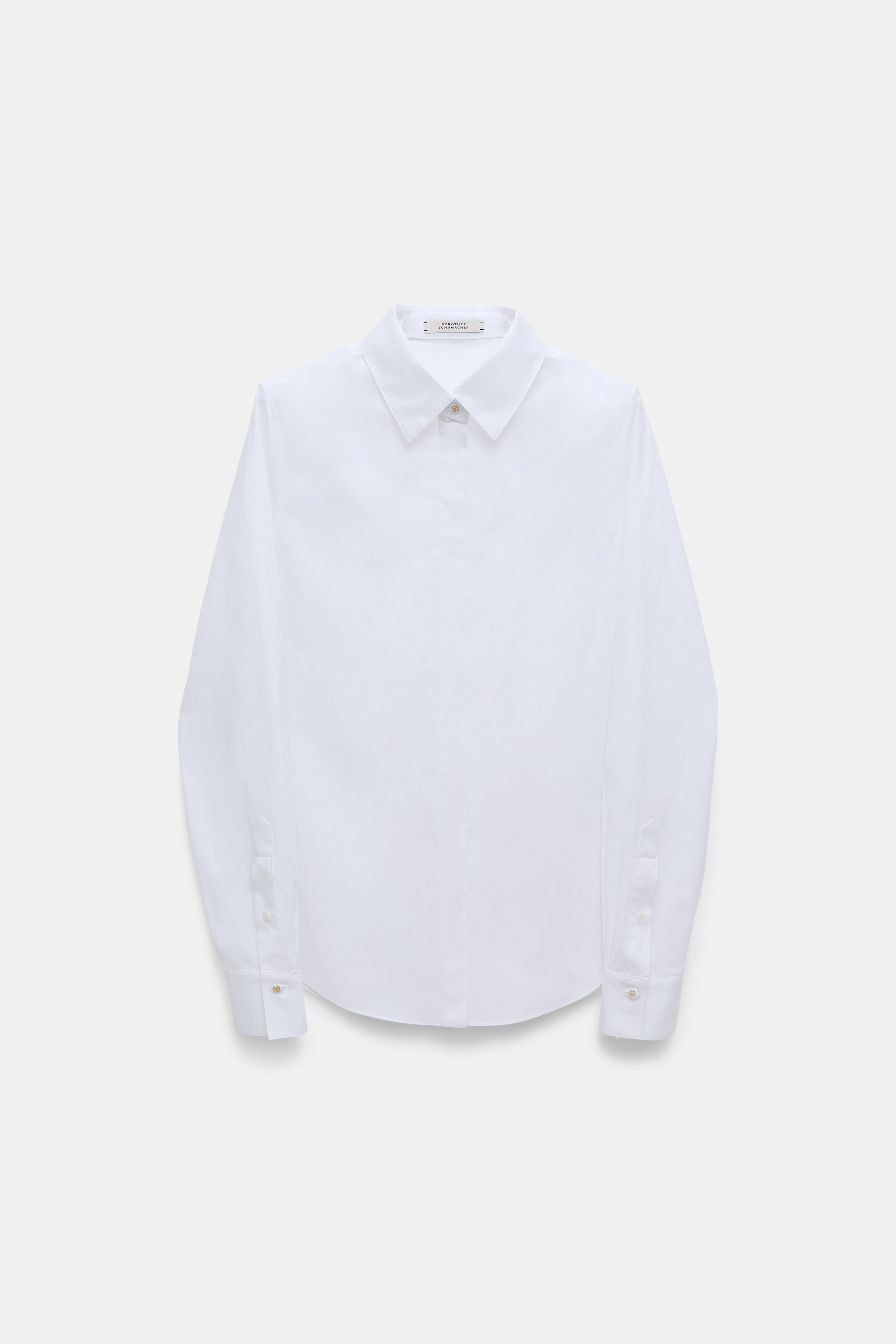 The blouse is made from crisp cotton poplin and has a figure-hugging silhouette. The essential style features D-rose details, a classic shirt collar and concealed button placket. Material & Care - 97 % Cotton, 3 % Elastane - Cotton-poplin blouse - Classic shirt collar - D-Rose button at the top and on the cuffs - Hidden button placket Size & Fit - Fitted shoulders - Fitted