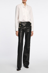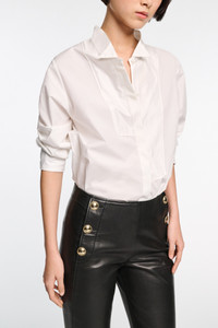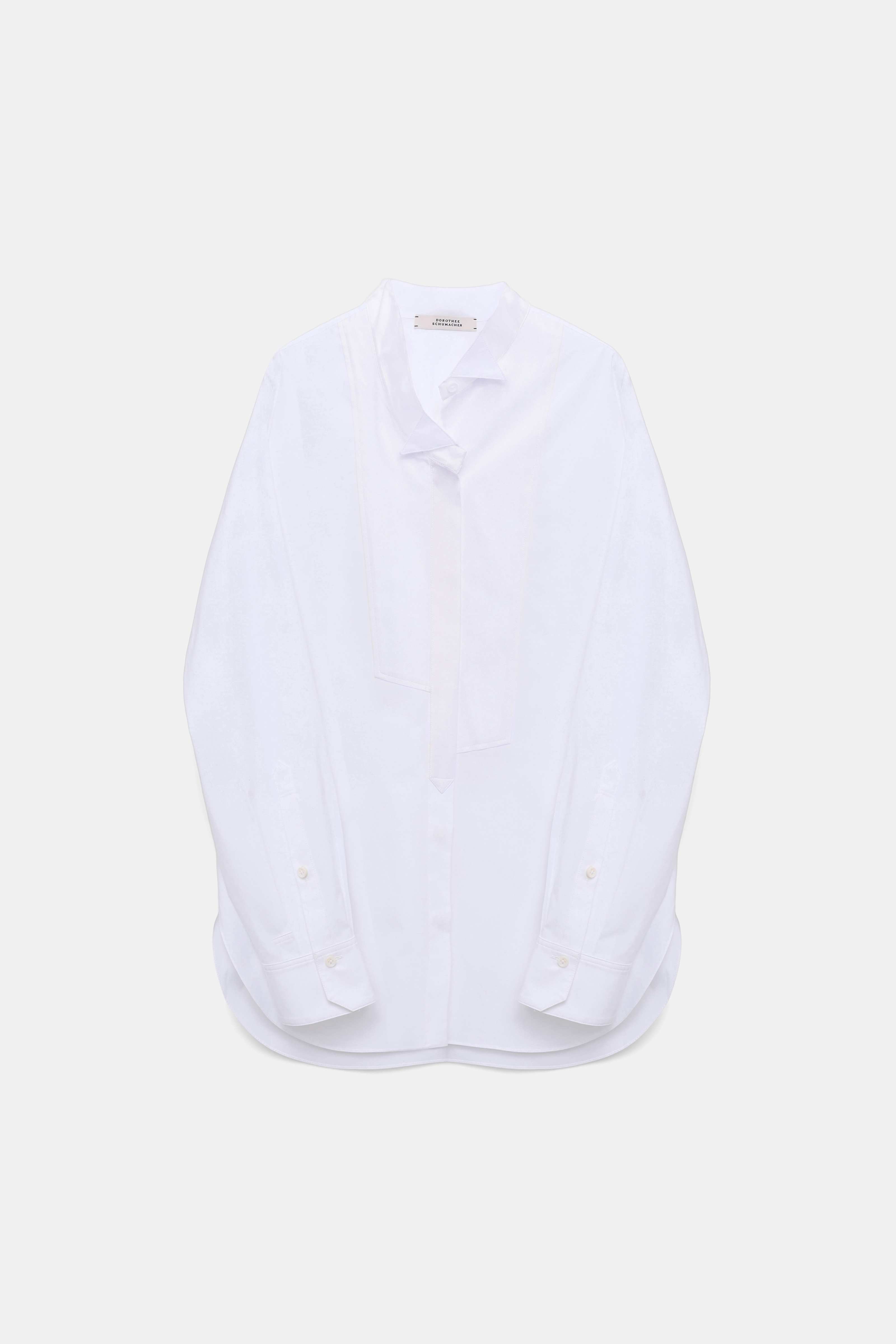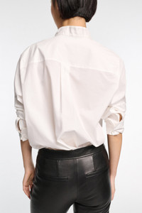 The cotton-poplin shirt has an asymmetrical silk twill collar and plastron. The relaxed style has a hidden front button placket. Material & Care - 96 % Cotton, 4 % Elastane - Cotton-poplin shirt with silk twill collar and plastron - Asymmetrical plastron and patricide collar - Hidden button placket - WE CARE - This item is finished according to STANDARD 100 by OEKO-TEX, 22.0.98928 Hohenstein HTTI Size & Fit - Our model is 179 cm tall and wears a size S - Relaxed fit - Slight dropped shoulders