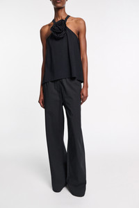 Doesn't get much easier than this: The cotton poplin pants have a relaxed leg and elastic drawstring waist. A faux fly gives the pants a neat tailored look. Please note that this style comes with an unfinished hemline so you can custom tailor to your desired length. Material & Care - 96 % Cotton, 4 % Elastane - Relaxed cotton poplin pants - Elastic drawstring waist - Faux fly - Side and back pockets - Comes with an unfinished hemline so you can custom tailor to your desired length - WE CARE - This item is finished according to STANDARD 100 by OEKO-TEX, 22.0.98928 Hohenstein HTTI - Hand wash program / Machine wash - Wash with similar colors Size & Fit - Our model is 179 cm tall and wears a size S - Wide leg - Relaxed fit - Slight dropped crotch