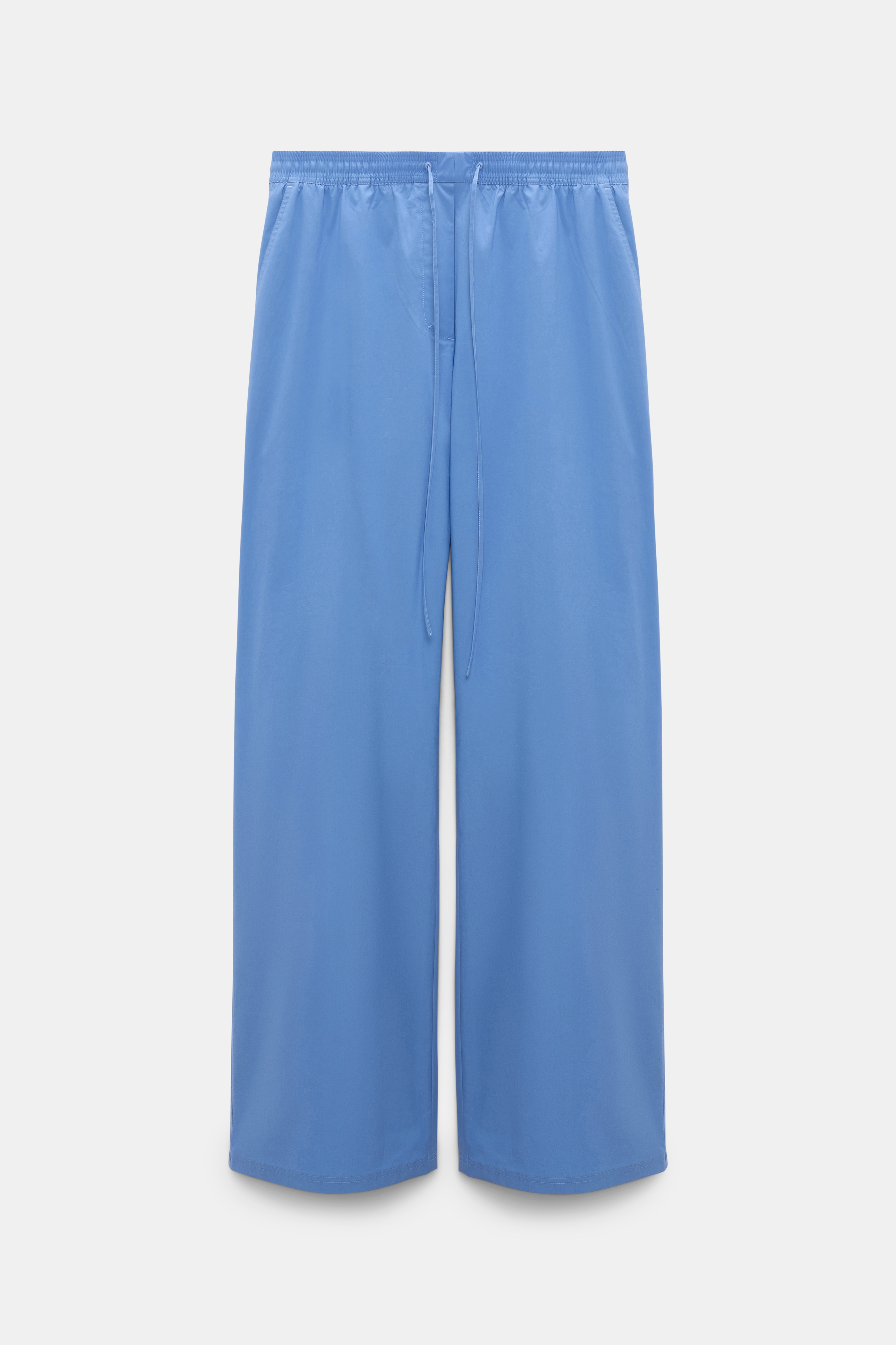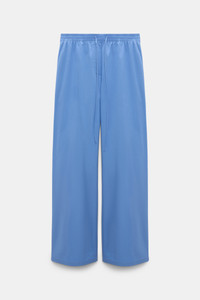 Doesn't get much easier than this: The cotton poplin pants have a relaxed leg and elastic drawstring waist. A faux fly gives the pants a neat tailored look. Please note that this style comes with an unfinished hemline so you can custom tailor to your desired length. Material & Care - 96 % Cotton, 4 % Elastane - Relaxed cotton poplin pants - Elastic drawstring waist - Faux fly - Side and back pockets - Comes with an unfinished hemline so you can custom tailor to your desired length - WE CARE - This item is finished according to STANDARD 100 by OEKO-TEX, 22.0.98928 Hohenstein HTTI - Hand wash program / Machine wash - Wash with similar colors Size & Fit - Our model is 179 cm tall and wears a size S - Wide leg - Relaxed fit - Slight dropped crotch
