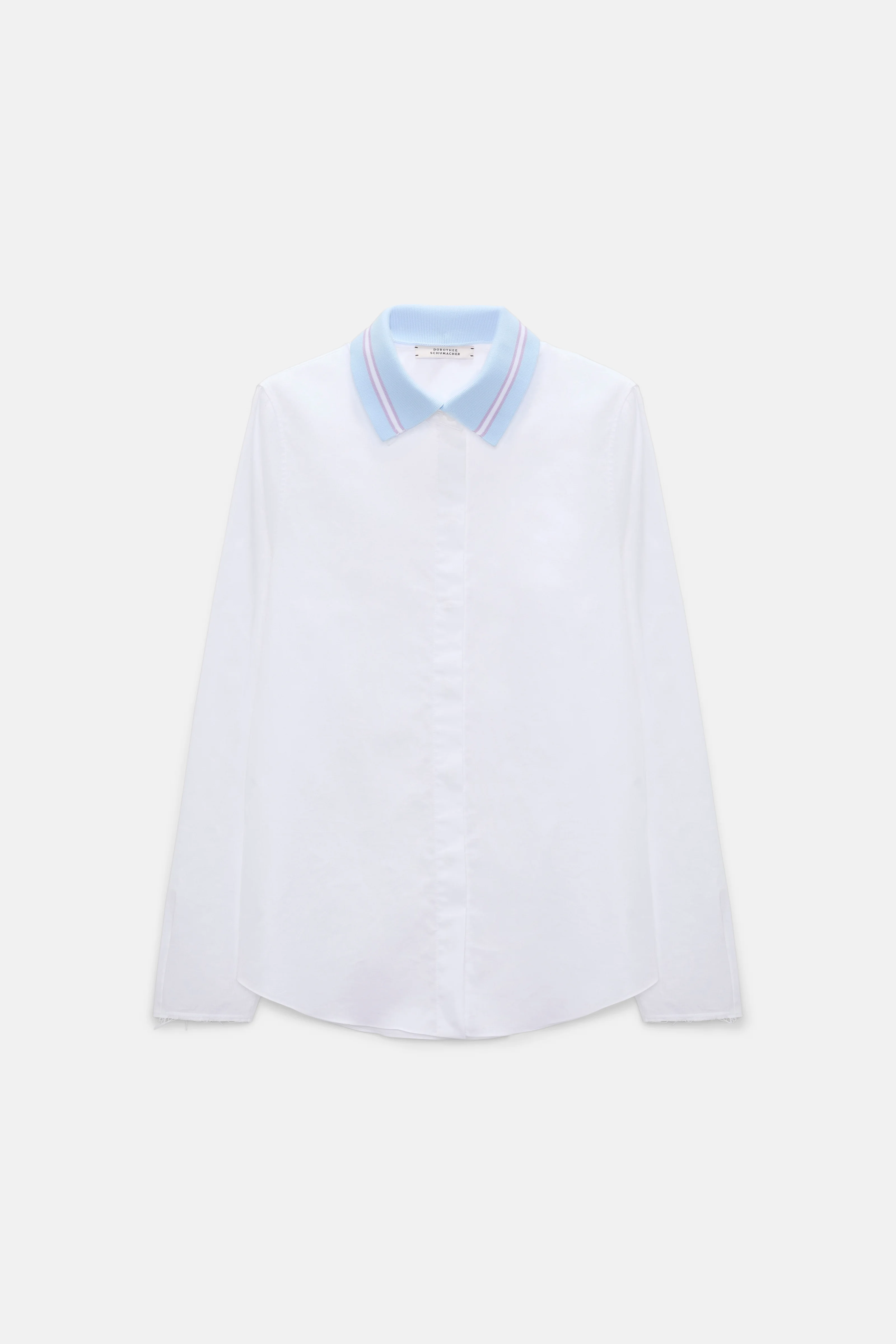 The cotton oxford shirt features a removable knit polo collar with contrast color striping. The shirt has a slim tailored fit. Material & Care - 100 % Cotton - Cotton oxford shirt with removable polo collar - Removable striped polo collar - Raw finish cuffs - No dry cleaning - Mild wash / Delicates - Wash with similar colors Size & Fit - Our model is 178cm tall and wears a size 2. - Fitted shoulders - Slim silhouette