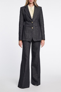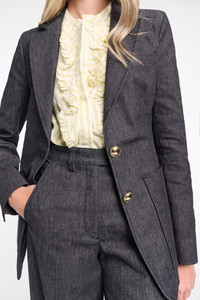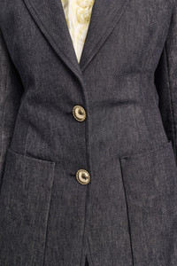 The tailored blazer is made of cotton denim with a hint of stretch. The blazer bas a classic notched lapel and patch pockets. The blazer can be worn as a suit with the matching pants. Material & Care - 98 % Cotton, 2 % Elastane - Tailored denim blazer - Classic notched lapel - Single-breasted - Patch pockets - Chest pocket - Slit cuffs Size & Fit - Our model is 179 cm tall and wears a size S - Slim tailored fit - Hourglass shape