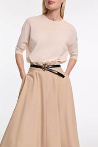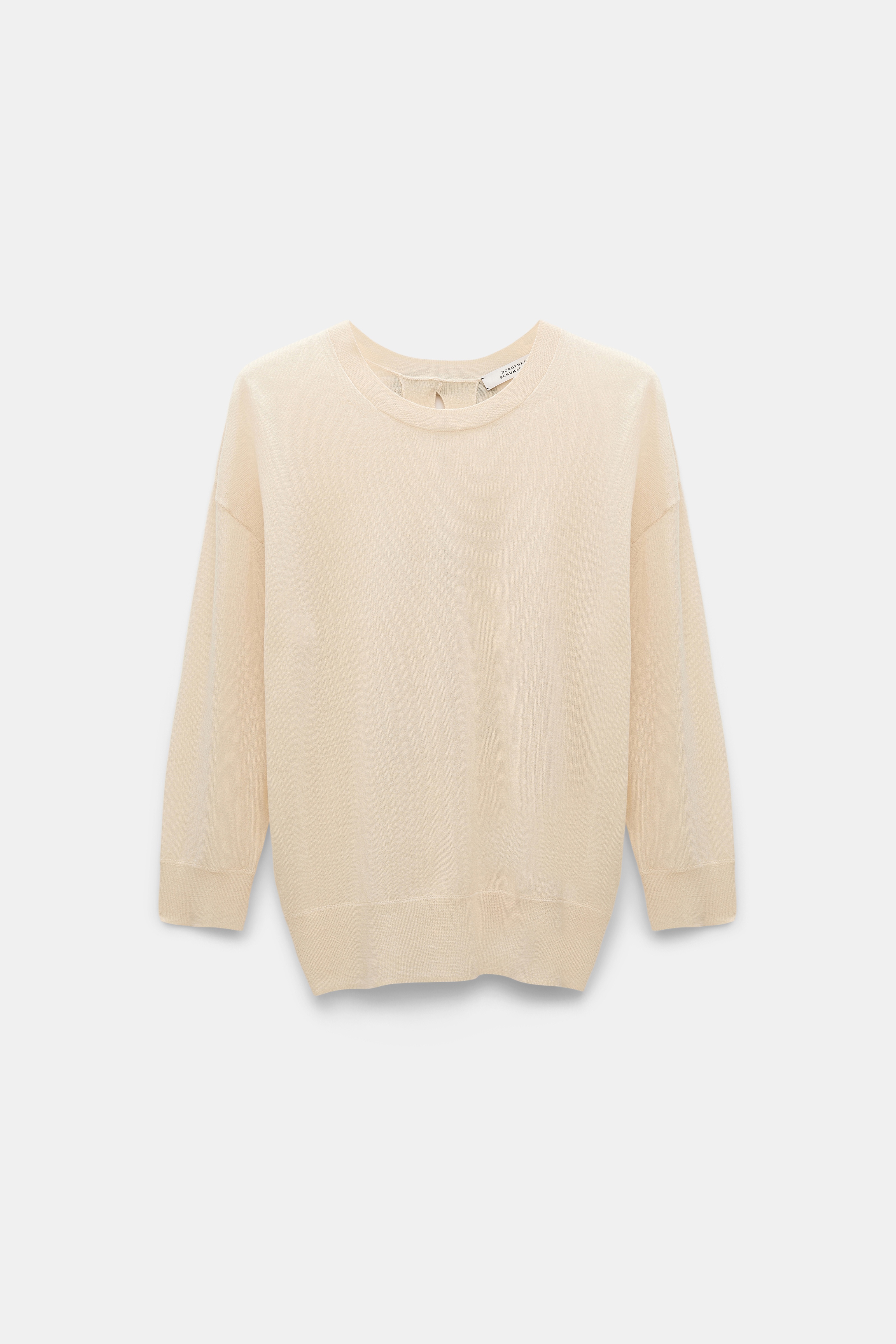 The pullover is made from a soft virgin wool-cotton mix and features a back slit with removable satin bows. The pullover has a relaxed draped top and 3/4 sleeves. Material & Care - 52 % Virgin Wool, 48 % Cotton - Virgin wool-cotton round neck pullover - Back slit with three removable silk satin bows - WE CARE - The yarn is mulesing-free - Hand wash cold / Machine wash cold - Wash with similar colors - Remove all detachable parts before cleaning Size & Fit - Our model is 178cm tall and wears a size 2 - Relaxed top, fitted at the hips - Dropped shoulders - Relaxed sleeves, fitted cuffs