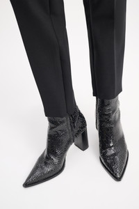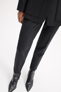 The cigarette pants are styled in a comfortable wool mix, which is infused with stretch for the perfect slim fit. Pair with the matching blazer for an elegant suit or with cozy knitwear for casual. Material & Care - 53 % Polyester, 43 % Virgin Wool, 4 % Elastane - Tailored cigarette pants - Pressed pleats on the front - Hidden fly closure - Side pockets - Back welt pockets - Side ankle zip Size & Fit - Our model is 178cm tall and wears a size S - High rise - Fitted - Ankle length