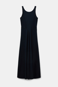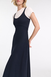The stretch cotton maxi dress is ribbed and has a fit and flare silhouette. The scoop neck style has thin straps and a bias cut skirt, which is slightly shorter in the front. Material & Care - 97 % Cotton, 3 % Elastane - Fit and flare maxi dress - Double layer ribbed stretch cotton - Scoop neckline - Topstitched trim at neckline and sleeve opening - Bias cut swing skirt is slightly shorter at the front - WE CARE - This item is finished according to STANDARD 100 by OEKO-TEX, 22.0.98928 Hohenstein HTTI - Mild wash / Delicates - Wash with similar colors Size & Fit - Our model is 180cm tall and wears a size 2 - Fitted top - Flared, swing skirt - Skirt is shorter at the center front