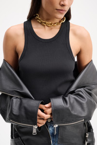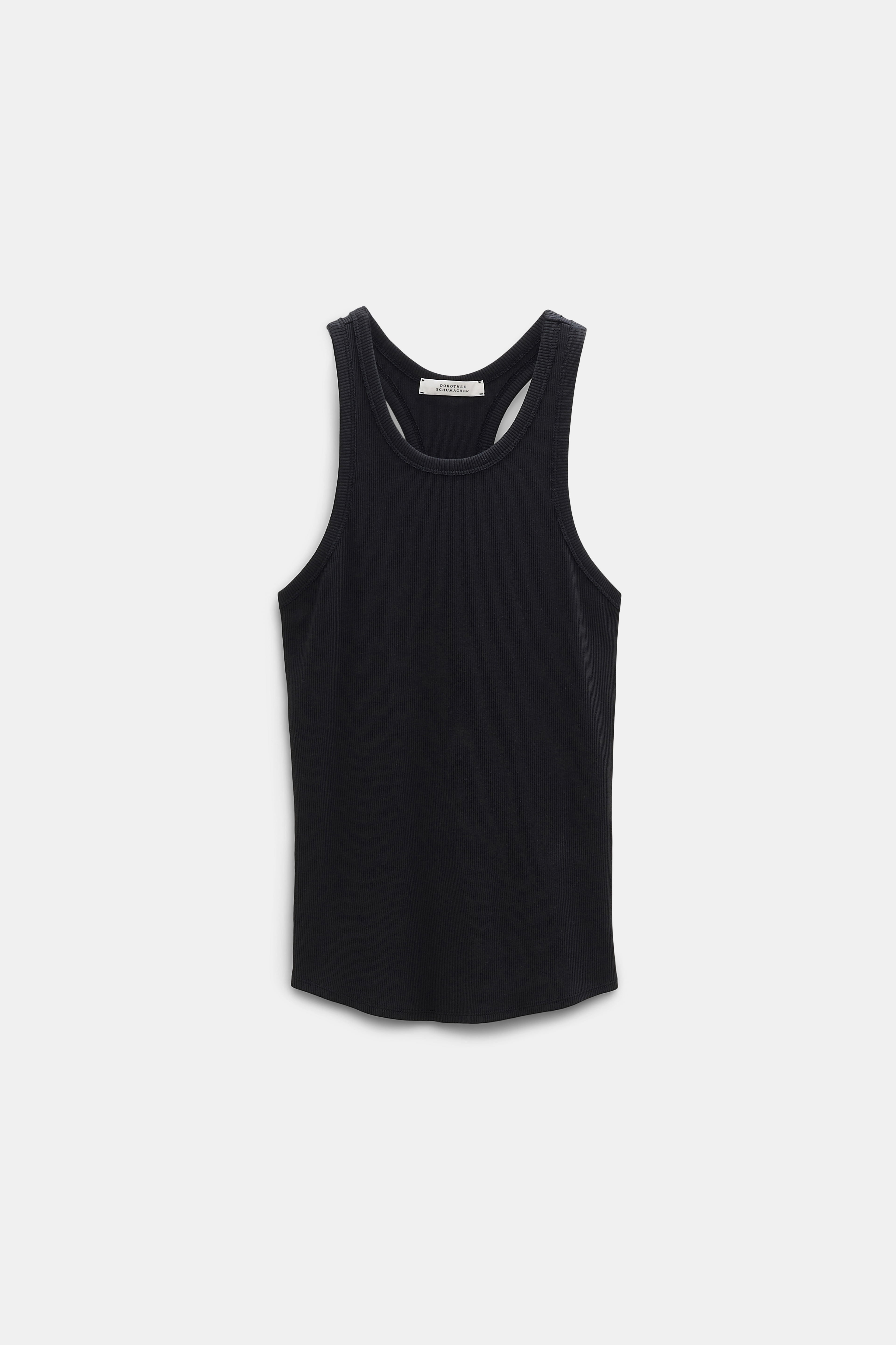 A sporty choice for layering, the ribbed cotton tank top if finished with a flattering racerback. Material & Care - 98 % Cotton, 2 % Elastane - Ribbed cotton tank top - O-neckline - Racerback - Raw edges on the sleeve openings and neckline - Mild wash / Delicates - Wash with similar colours Size & Fit - Our model is 178cm tall and wears a size S - Fitted