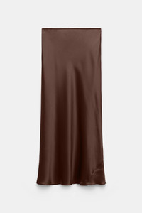 The bias-cut midi-skirt is styled in silk satin and has an elastic waist. The skirt can be worn as a set with the matching blouse. Material & Care - 100 % Silk - Bias cut midi-skirt in silk satin - Elastic waist - Hand wash cold / Machine wash old - Wash with similar colors Size & Fit - Our model is 178cm tall and wears a size 2 - Form-fitting silhouette