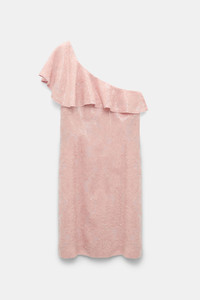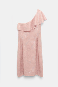 When the invitation calls for sequins...The thigh-grazing dress is covered with iridescent sequins. The dress has a one-shoulder carmen neckline, which falls into a soft flounce. Material & Care - 100 % Polyester - Dress made of iridescent sequins on fil coupe - One shoulder twisted flounce - Dry clean only - No optical brighteners - Do not expose to extreme light - Shield from sharp items Size & Fit - Straight draped silhouette