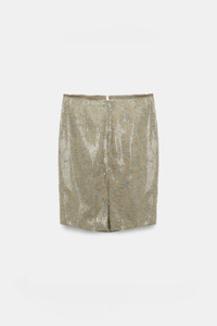 When the invitation calls for sequins...The knee-grazing pencil skirt is covered with iridescent sequins. The skirt has a kick pleat for ease of movement and a hidden back zip closure. Material & Care - 100 % Polyester - Pencil skirt made of iridescent sequins on fil coupe - Hidden back zip closure - Kick pleat - Dry clean only - No optical brighteners - Do not expose to extreme light - Shield from sharp items Size & Fit - Our model is 178 cm tall and wears a size S - Low-rise - Slim fit