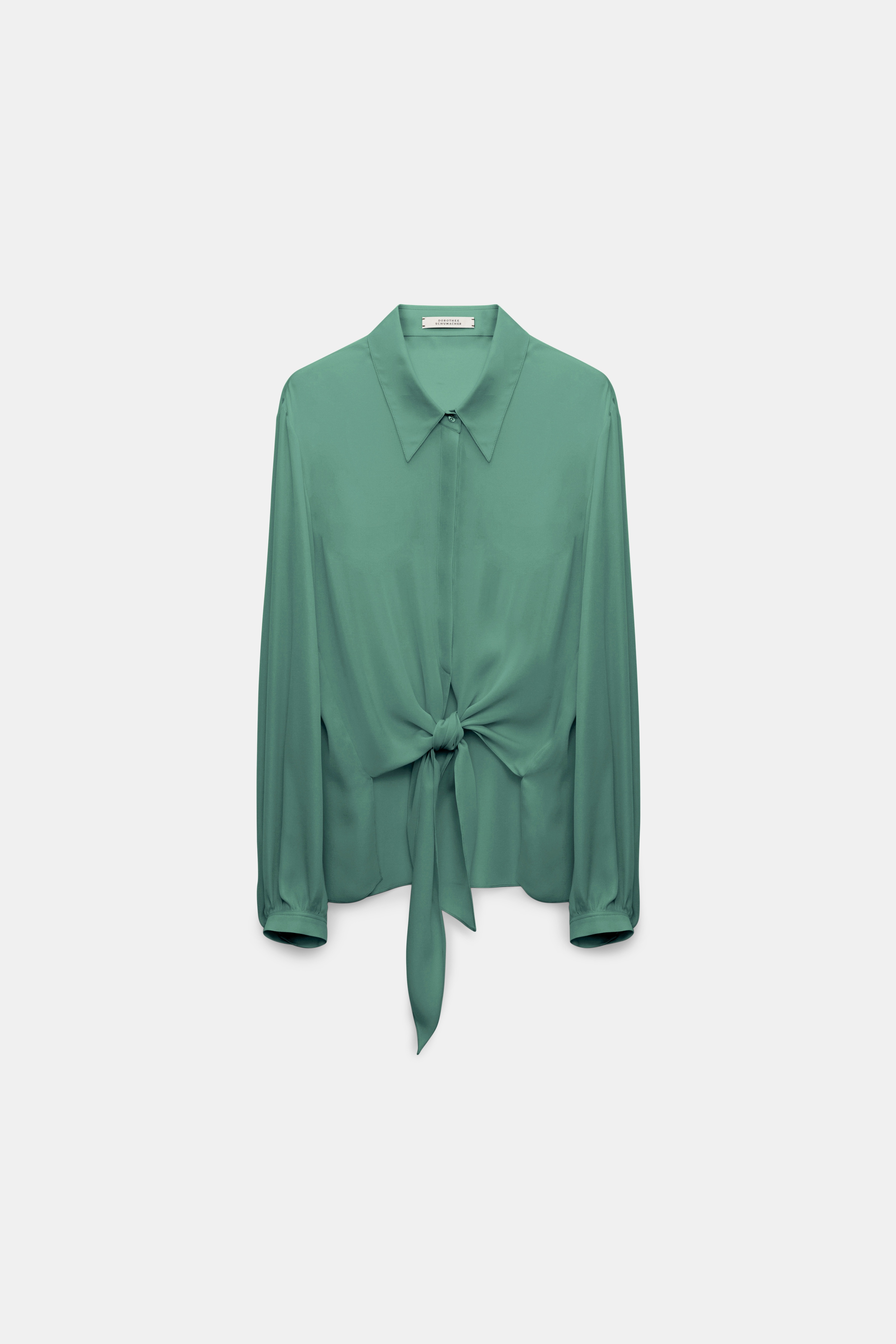 The blouse is made from double silk georgette and ties at the front. The blouse has causal volume in the body and loose long sleeves with fitted button cuffs. Material & Care - 100 % Viscose - Tie blouse in silk double georgette - Classic collar - Hidden button placket - Handwaschprogramm / Maschinenwasche - Mit ahnlichen Farben waschen - Contains non-textile parts of animal origin Size & Fit - Casual volume