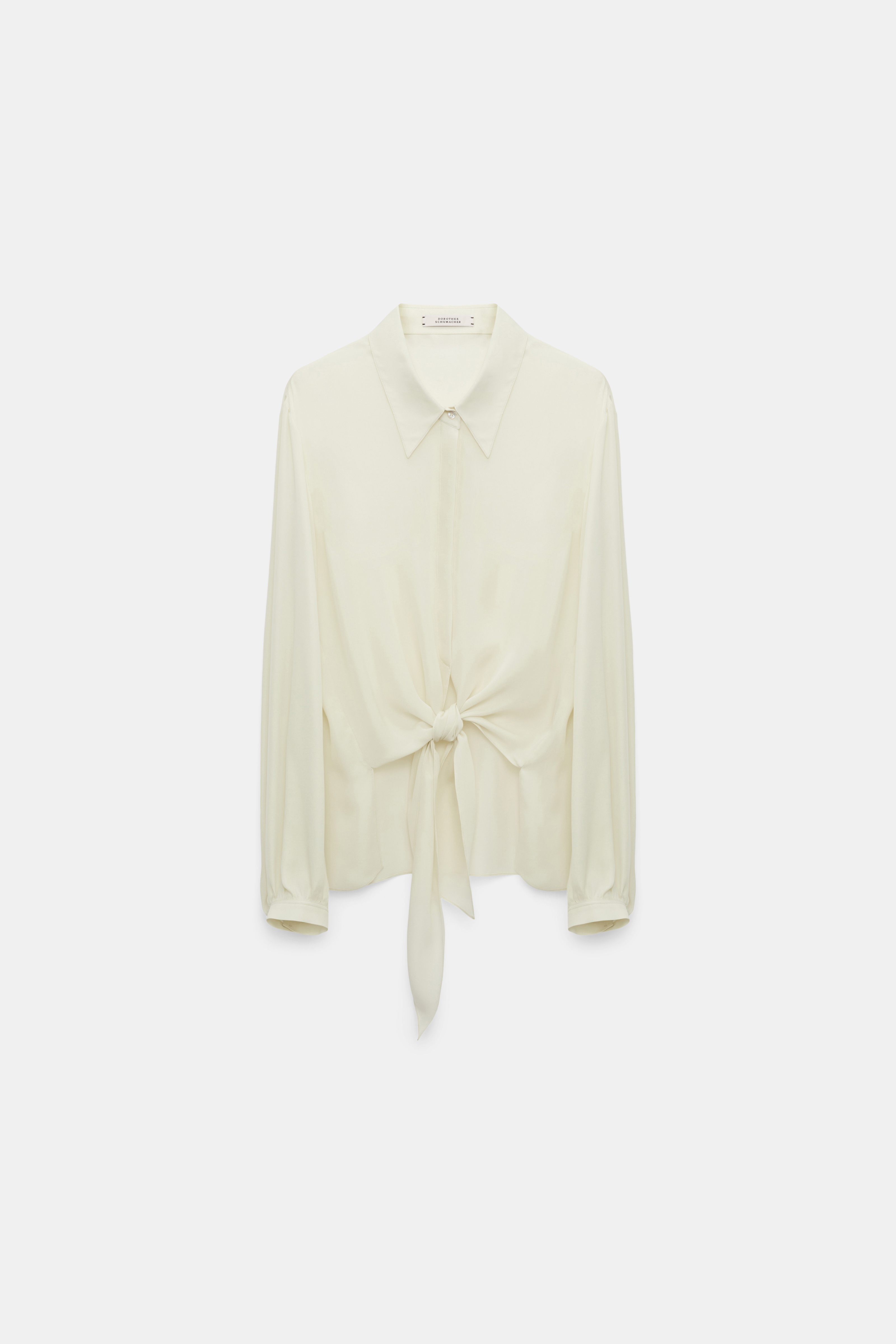 The blouse is made from double silk georgette and ties at the front. The blouse has causal volume in the body and loose long sleeves with fitted button cuffs. Material & Care - 100 % Viscose - Tie blouse in silk double georgette - Classic collar - Hidden button placket - Handwaschprogramm / Maschinenwasche - Mit ahnlichen Farben waschen - Contains non-textile parts of animal origin Size & Fit - Casual volume