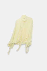 The dynamic blouse is made from double silk georgette and comes with a matching scarf. The blouse has an oversized, cape-like drape and is finished with ruffle flounces at the cuffs and hem. Material & Care - 100 % Silk - Cape-style blouse in silk double georgette - Round neckline - Center front slit - Integrated top in single georgette - Separate scarf in single georgette - Handwaschprogramm / Maschinenwasche - Mit ahnlichen Farben waschen - Remove all detachable parts before cleaning - Contains non-textile parts of animal origin Size & Fit - Our model is 180 cm tall and wears a size S - Oversized - Voluminous drape