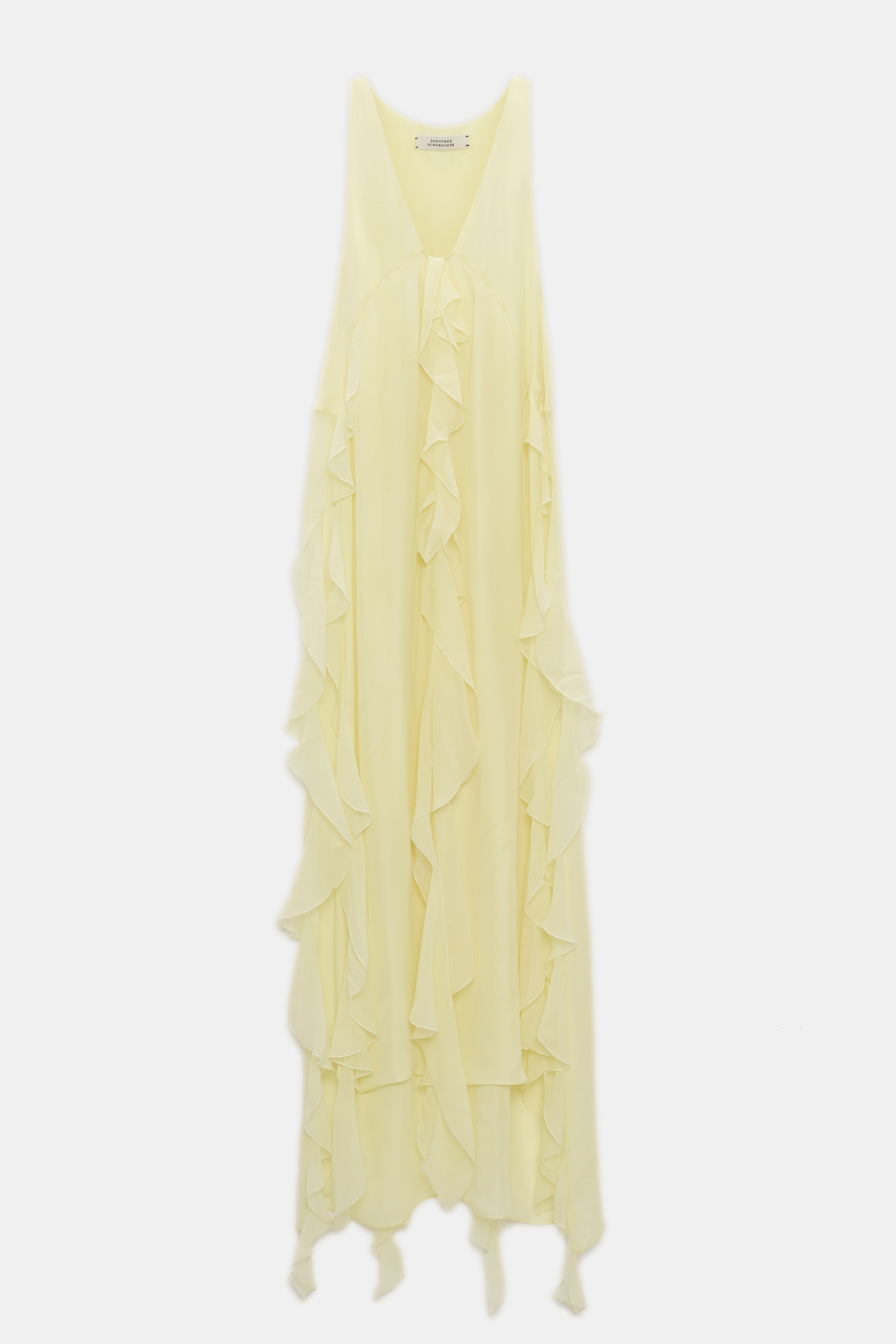 Unforgettable festival memories start here: The ruffle maxi top is made from double- and single silk georgette and comes with a matching scarf. The top has deep neckline and a high slit. Material & Care - 100 % Viscose - Festival top in silk double- and single georgette - Deep neckline - Cascading ruffles - High slit - Separate ruffle scarf - Handwaschprogramm / Maschinenwasche - Mit ahnlichen Farben waschen - Remove all detachable parts before cleaning Size & Fit - Loosely draped volume