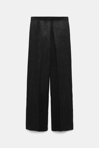 Made to mix and match. Introducing your new season suiting: The wide leg pants are made from a linen blend and can be worn as a suit with the matching blazer. Please note that this style comes with an unfinished hemline so you can custom tailor to your desired length. Material & Care - 53 % Linen, 47 % Viscose - Wide leg linen blend pants - Diagonal side pockets - Piped trim - Back welt pockets - Waistband with extended tab closure - Comes with an unfinished hemline so you can custom tailor to your desired length - Dry clean only - No optical brighteners - Do not expose to extreme light - Shield from sharp items Size & Fit - Wide leg