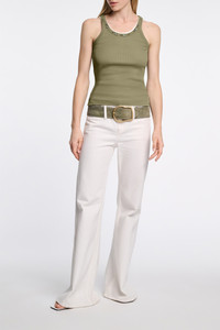 The ribbed cotton tank top has a round scoop neckline with decorative hotfix embellishment. The tank top has distressed edges. Material & Care - 100 % Cotton - Garment dyed ribbed cotton tank top with embellishment - Round scoop neckline - Decorative hotfix embellishment is a mix of rivets and glass rivets - Trim with distressed edges - No dry cleaning - Mild wash / Delicates - Wash with similar colors Size & Fit - Our model is 180cm tall and wears a size S - Fitted