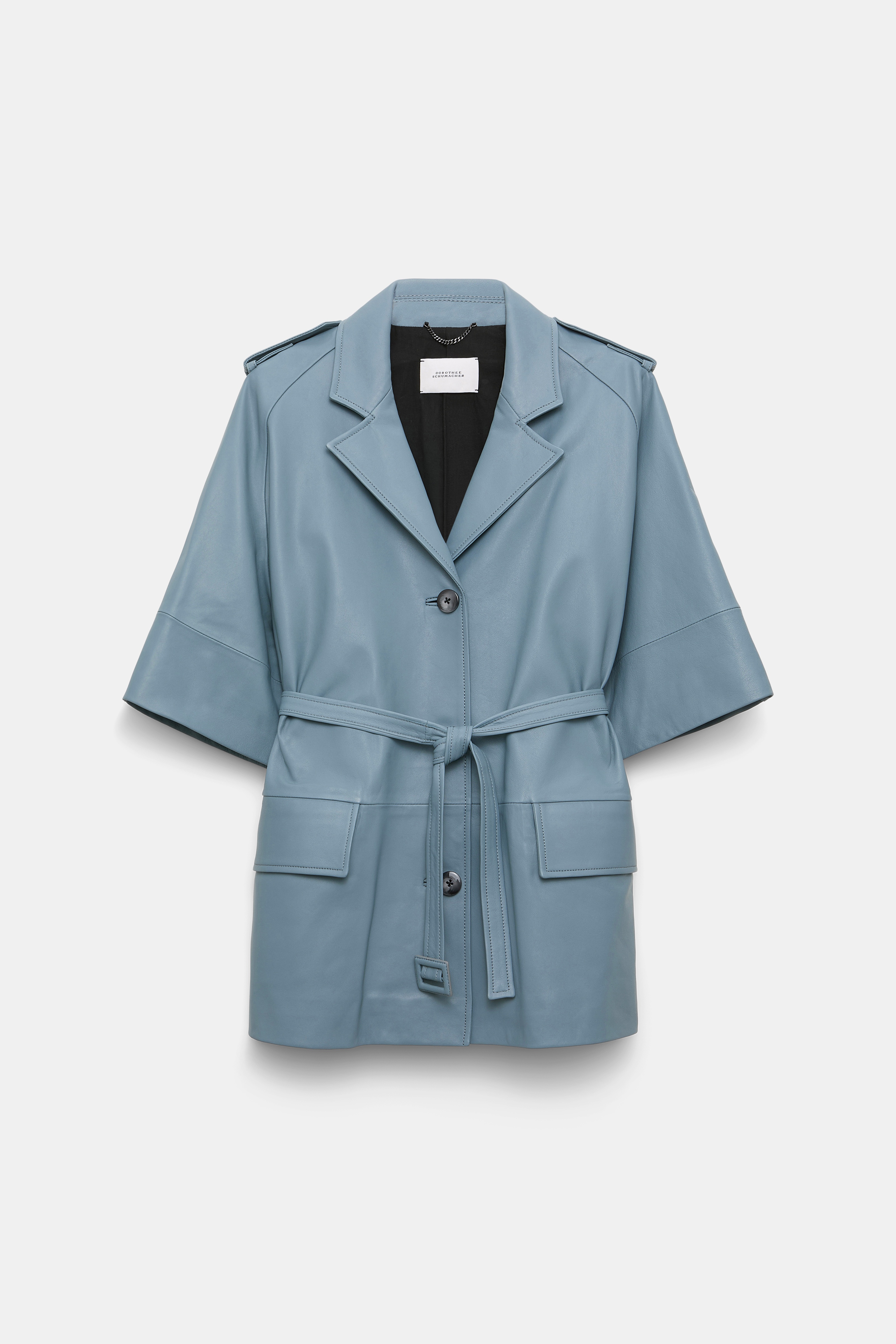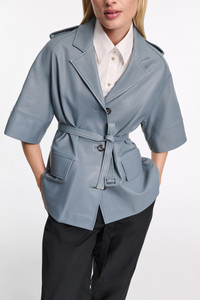 Crafted in the softest lambskin, we've remixed our forever favorite trench coat with 3/4-length sleeves and an A-line silhouette. The coat has classic trench details and comes with a matching belt. Material & Care - 100 % Leather (lamb) - Lambskin trench coat - Notched collar - 3/4-length raglan sleeves with buttoned tab cuffs - Flap pockets - Epaulettes - Matching belted sash - Back vent - No dry cleaning - Do not wash - Colour changes in product may result from strong light irradiation - This garment may transfer onto light coloured materials Size & Fit - Our model is 178cm tall and wears a size 2 - Cropped sleeves - A-line