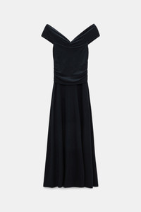 Crafted in a comfortable cotton-jersey mix, the stretchy dress features a draped knot detail and flared swing skirt. The fitted style has a V-neckline and overlapping bodice effect. Material & Care - 50 % Viscose, 45 % Cotton, 5 % Elastane - Dress with draped knot detail - Double layer top with knot detail - Flared swing skirt - WE CARE - This item is finished according to STANDARD 100 by OEKO-TEX, 22.0.98928 Hohenstein HTTI - Hand wash cold / Machine wash cold - Wash with similar colors Size & Fit - Our model is 180cm tall and wears a size 2 - Fitted at the shoulders - Fitted waist - Flared skirt