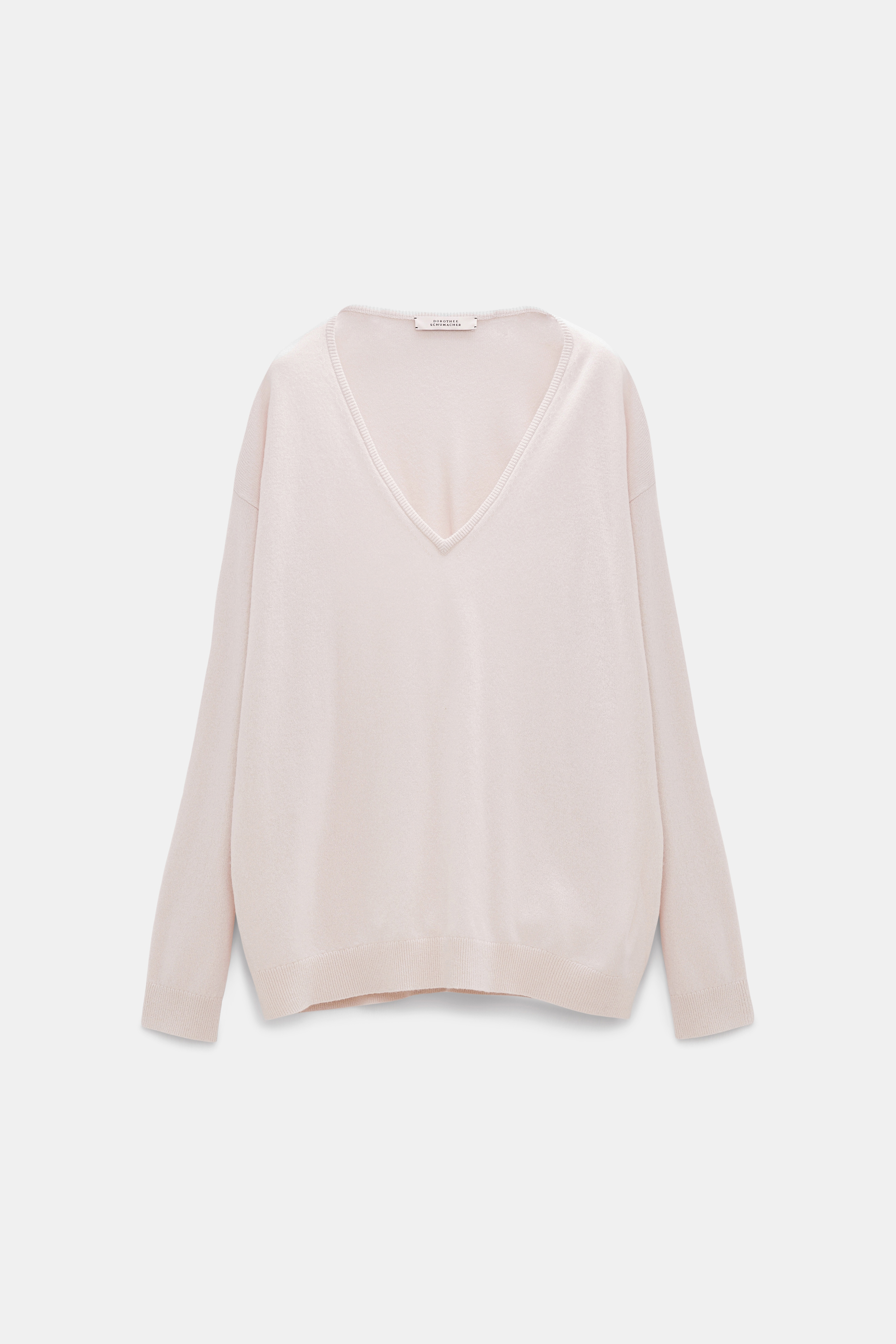 A luxurious choice in pure cashmere, the sweater has a wide V-neckline which can be draped effortlessly off the shoulder. Material & Care - 100 % Cashmere - V-neck sweater in cashmere - Wide neckline with thin, double-layer rib trim - Pure cashmere - Fine gauge - WE CARE - This item is finished according to STANDARD 100 by OEKO-TEX, 22.0.98928 Hohenstein HTTI - Hand wash programm cold / Machinewash - Wash with similar colours Size & Fit - Our model is 177cm tall and wears a size S - Relaxed body - Fitted sleeves
