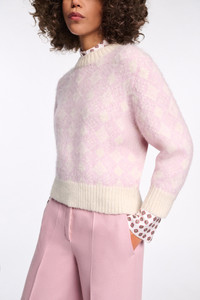 The pullover is knit in a soft alpaca-wool mix and features graphic jacquard patterning. The boxy pullover has a relaxed fit and ribbed knit trim. Material & Care - 41 % Polyamide, 34 % Alpaca, 25 % Wool - Round neck pullover - Alpaca mix yarn in graphic jacquard - WE CARE - The wool content is mulesing-free - Hand wash cold / Machine wash cold - Wash with similar colors - Reshape in wet condition Size & Fit - Our Model is 179cm tall and wears a size 2. - Relaxed boxy fit, fitted at the hem - Classic shoulders - Wide sleeves, fitted cuffs