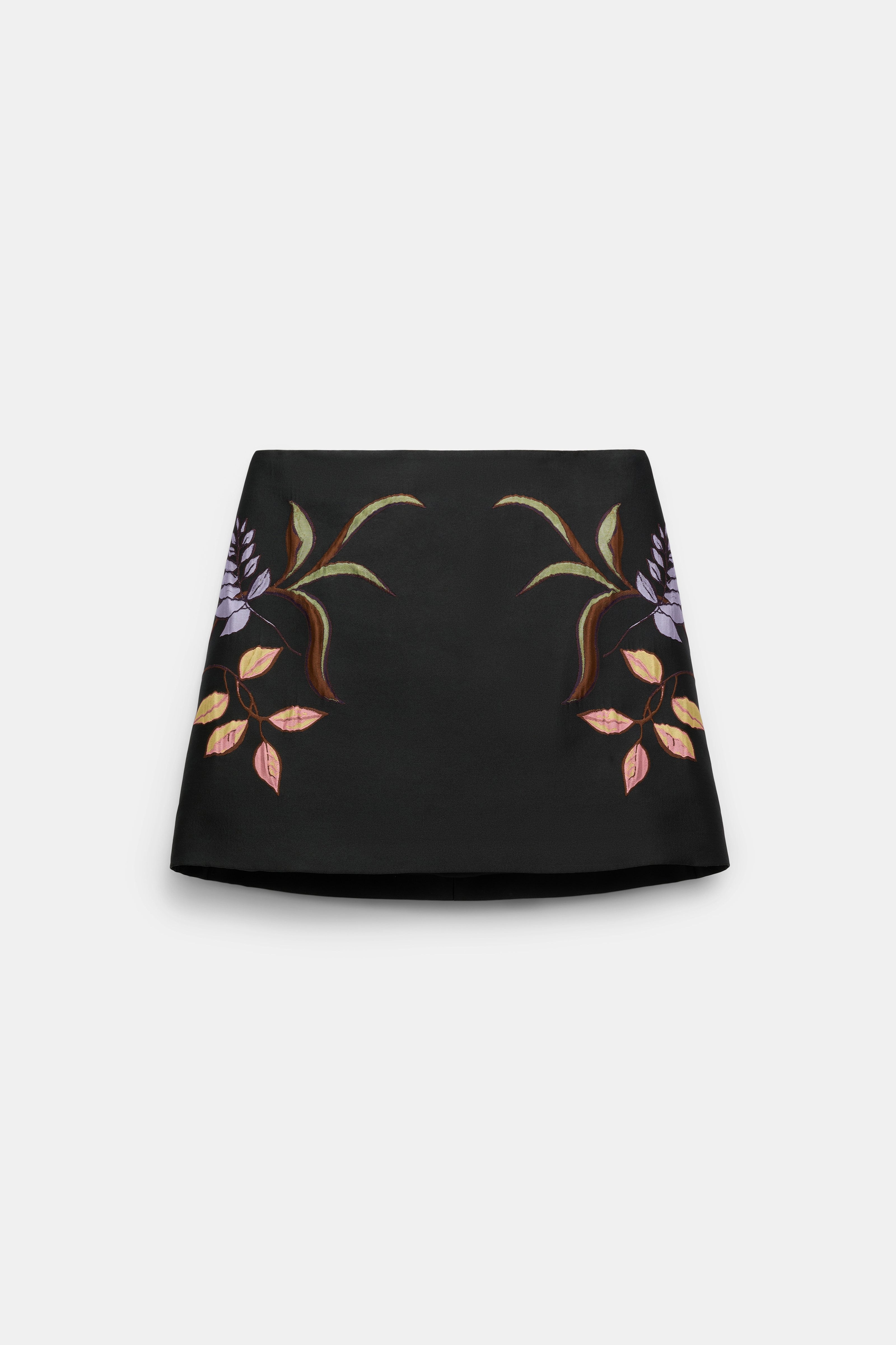 Our Atelier & Italian artistry at work: The positioned print becomes a focal point on the A-line mini-skirt. The thigh-grazing style has an integrated shorts lining. Material & Care - 91 % Polyester, 9 % Polyamide - A-line mini-skirt in three-dimensional cloque jacquard - Positioned print - Integrated shorts lining - Hand wash cold / Machine wash old - Wash with similar colors Size & Fit - Our model is 179cm tall and wears a size 2 - Slight low waist - A-line silhouette