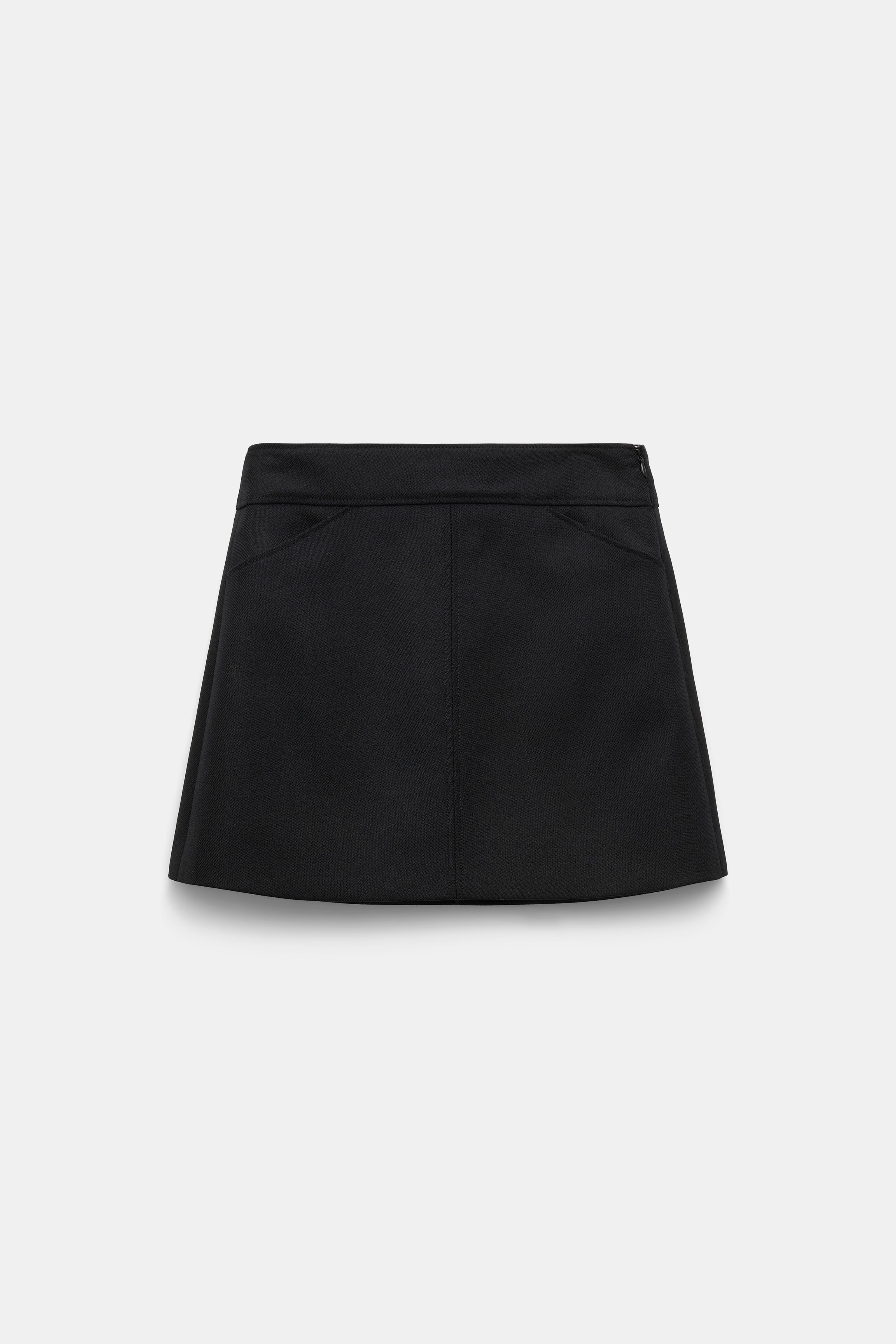 Made to match: The mini skirt is made from virgin wool and can be worn as a set with the matching coat and shell. Material & Care - 100 % Virgin Wool - Mini skirt in virgin wool - Wide waistband - Diagonal side pockets - Integrated shorts lining - Hand wash cold / Machine wash old - Wash with similar colors Size & Fit - Our model is 179cm tall and wears a size 2 - A-line