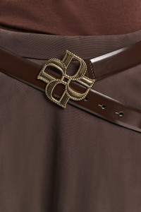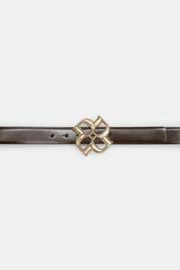 The mid-shine calfskin belt has a D-rose buckle and adjustable push stud closure. Material & Care - 100 % Leather (calf) - D-Rose buckle belt - Mid-shine calf leather outside and lining - D-Rose pin buckle - Bombatura effect - Black painted edges Size & Fit - Width: 3 cm - Size measurement taken from pin to middle hole