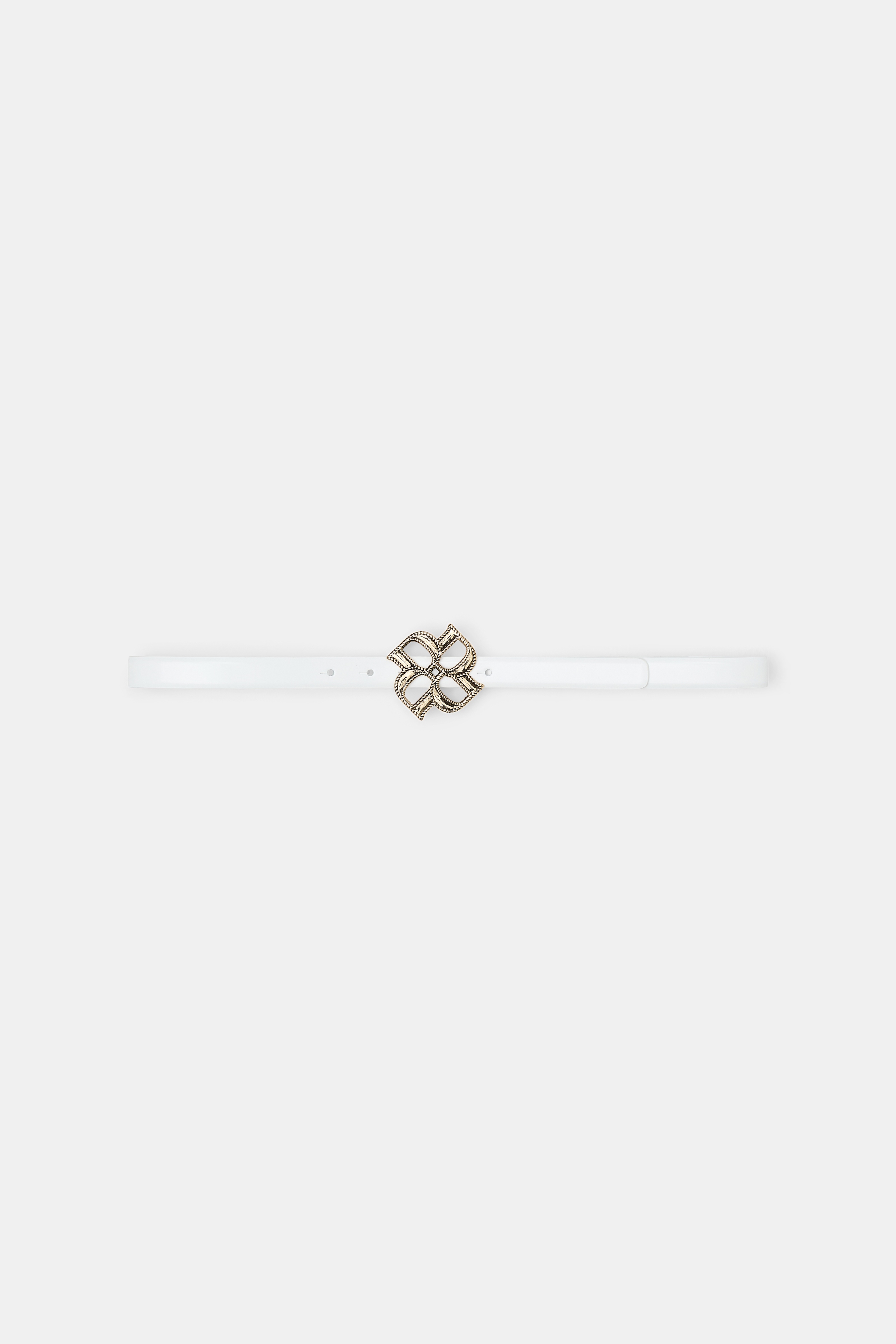 The shiny boxcalf belt has a D-rose buckle and adjustable push stud closure. Material & Care - 100 % Leather (calf) - Belt with D-rose buckle - Boxcalf outside and lining - Vintage icy gold-tone buckle - Tonal painted edges Size & Fit - Width: 2 cm - Size measurement taken from middle hole to buckle pin