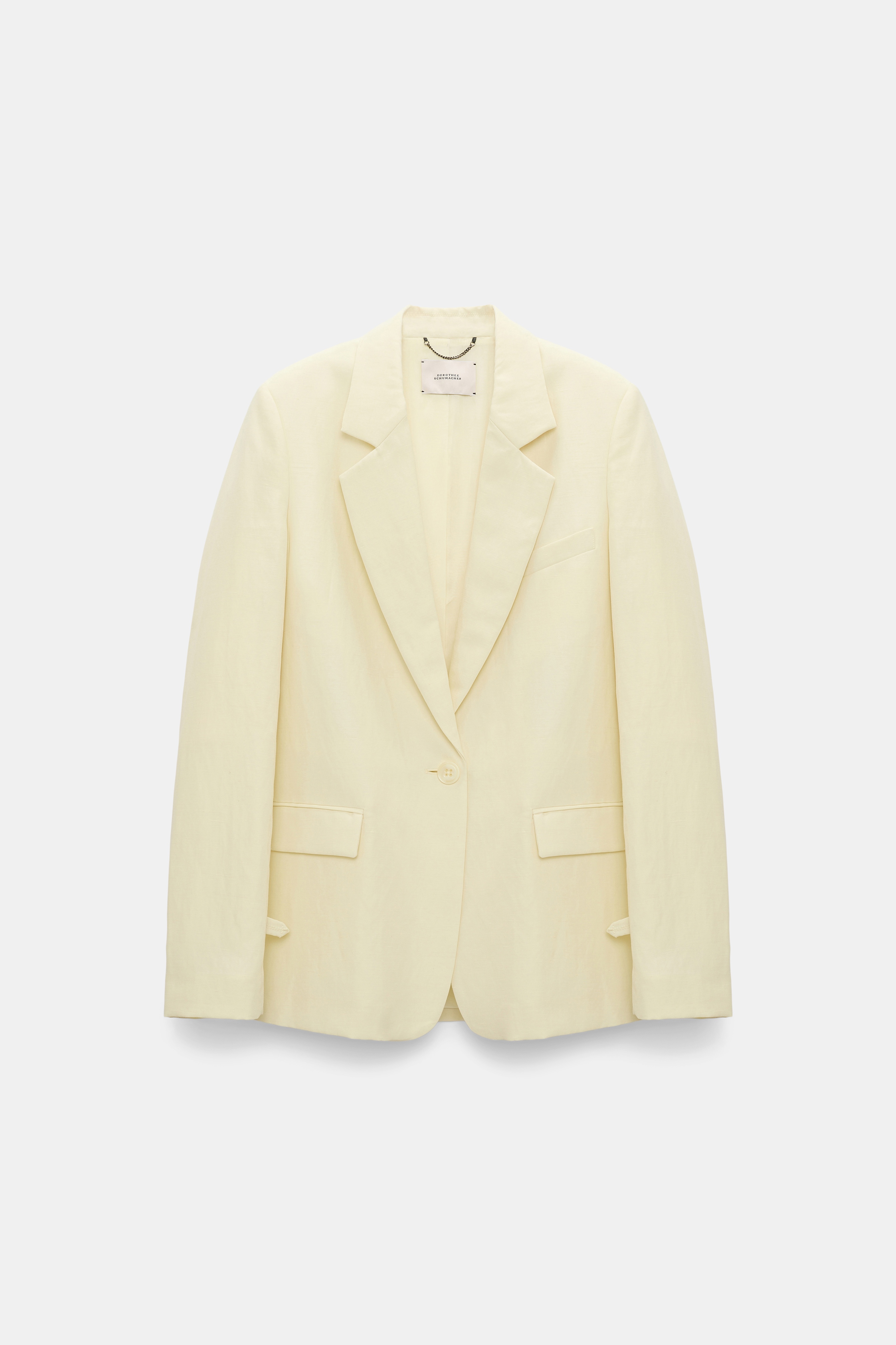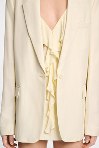 Made to mix and match. Introducing your new season suiting: The blazer is made from technical linen and has a slight oversized fit. The blazer features classic styling and a buttoned loop detail at the wrist. The blazer can be combined with the matching pants or micro mini. Material & Care - 59 % Polyester, 41 % Linen - Blazer in technical linen - Notched lapel - Flap pockets - Chest pocket - Buttoned loop on the sleeve - Dry clean only - No optical brighteners - Do not expose to extreme light - Shield from sharp items Size & Fit - Our model is 178 cm tall and wears a size S - Slightly oversized
