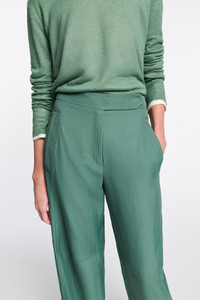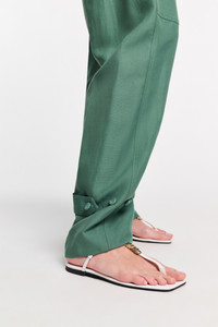 Made to mix and match. Introducing your new season suiting: The O-leg pants are made from technical linen and have buttoned tabs at the ankles for multiple ways to style. The pants can be combined with the matching blazer Material & Care - 59 % Polyester, 41 % Linen - O-leg pants in technical linen - Buttoned tab detail on the ankles - Welted front pockets - Back flap pockets - Hand wash program / Machine wash - Wash with similar colors Size & Fit - Our model is 179 cm tall and wears a size S - O-Shape