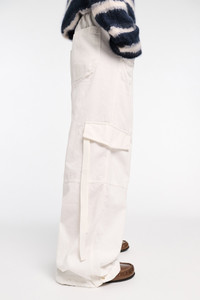 The cargo pants are crafted in soft cotton corduroy and have a wide leg. The pants have side flap cargo pockets and adjustable drawstring cuffs. Material & Care - 100 % Cotton - Corduroy cargo pants - Extended tab closure on the waistband - Side slit pockets - Elastic waistband - Decorative tape - Adjustable drawstring cuff - Back patch pockets Size & Fit - Our model is 179 cm tall and wears a size S - Wide leg
