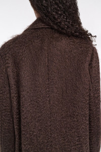 Yes. It is as cozy as it looks. The wool-mohair coat is oversized and has raw finish edges and has a double-breasted front which closes with two buttons. Material & Care - 47 % Wool, 36 % Mohair, 13 % Polyacrylic, 4 % Polyester - Classic wool-mohair coat - Double-breasted button front - Wide notched collar - Flap pockets - Buttoned slit cuffs - Dry clean only - No optical brighteners - Do not expose to extreme light - Shield from sharp items Size & Fit - Oversized