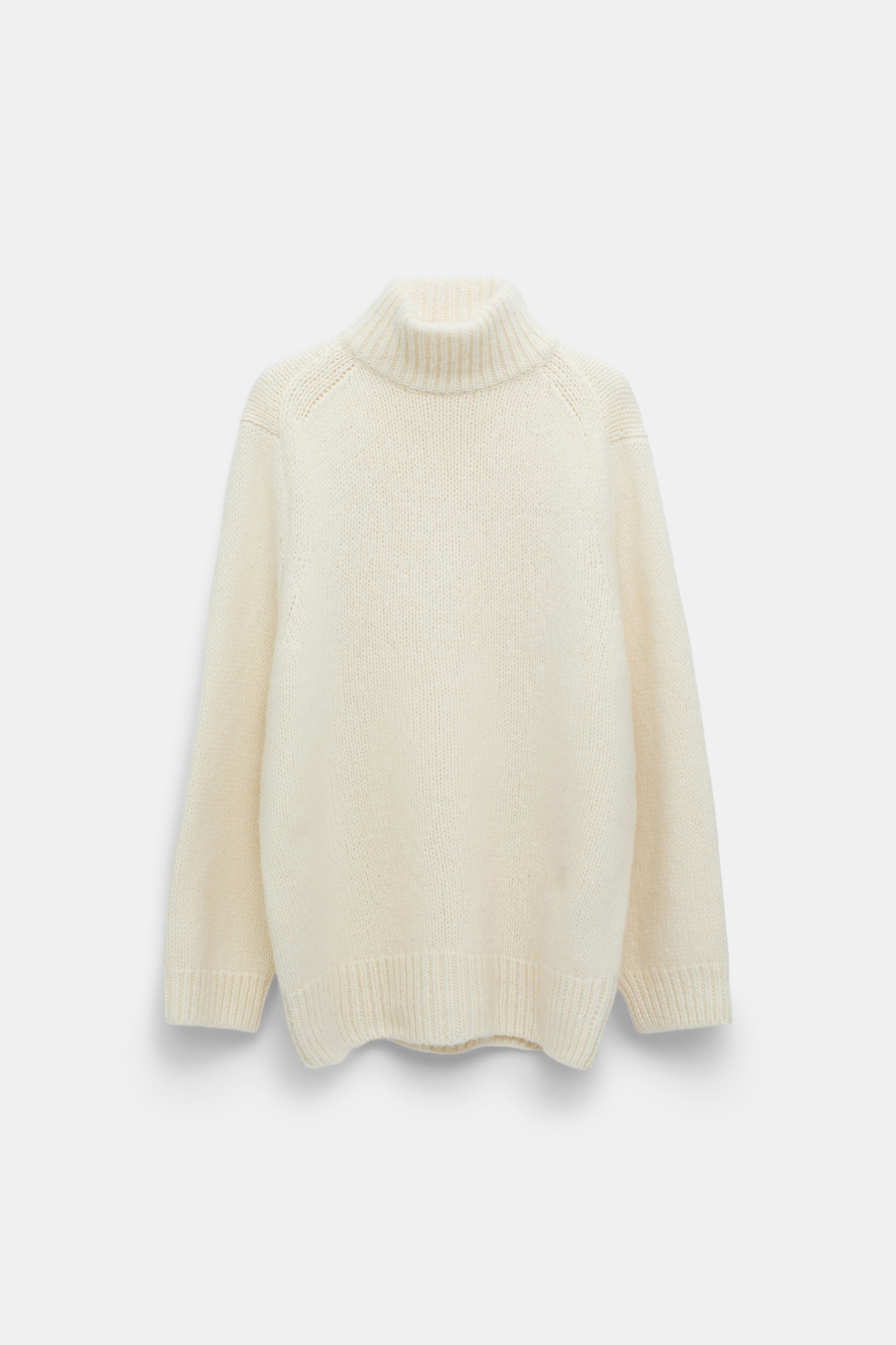 An extra cozy style in alpaca-infused wool, the turtleneck pullover has a relaxed cut and casual dropped shoulders. Material & Care - 40 % Virgin wool (Merino), 36 % Polyamide, 24 % Baby alpaca - Virgin wool-alpaca turtleneck pullover - Knit with new alpaca yarn - Double layer ribbed knit turtleneck - Shoulder seams angle to the front - Hand wash cold / Machine wash old - Wash with similar colors Size & Fit - Our model is 178cm tall and wears a size 2 - Relaxed fit, falls to the hip - Dropped shoulders - Relaxed sleeves