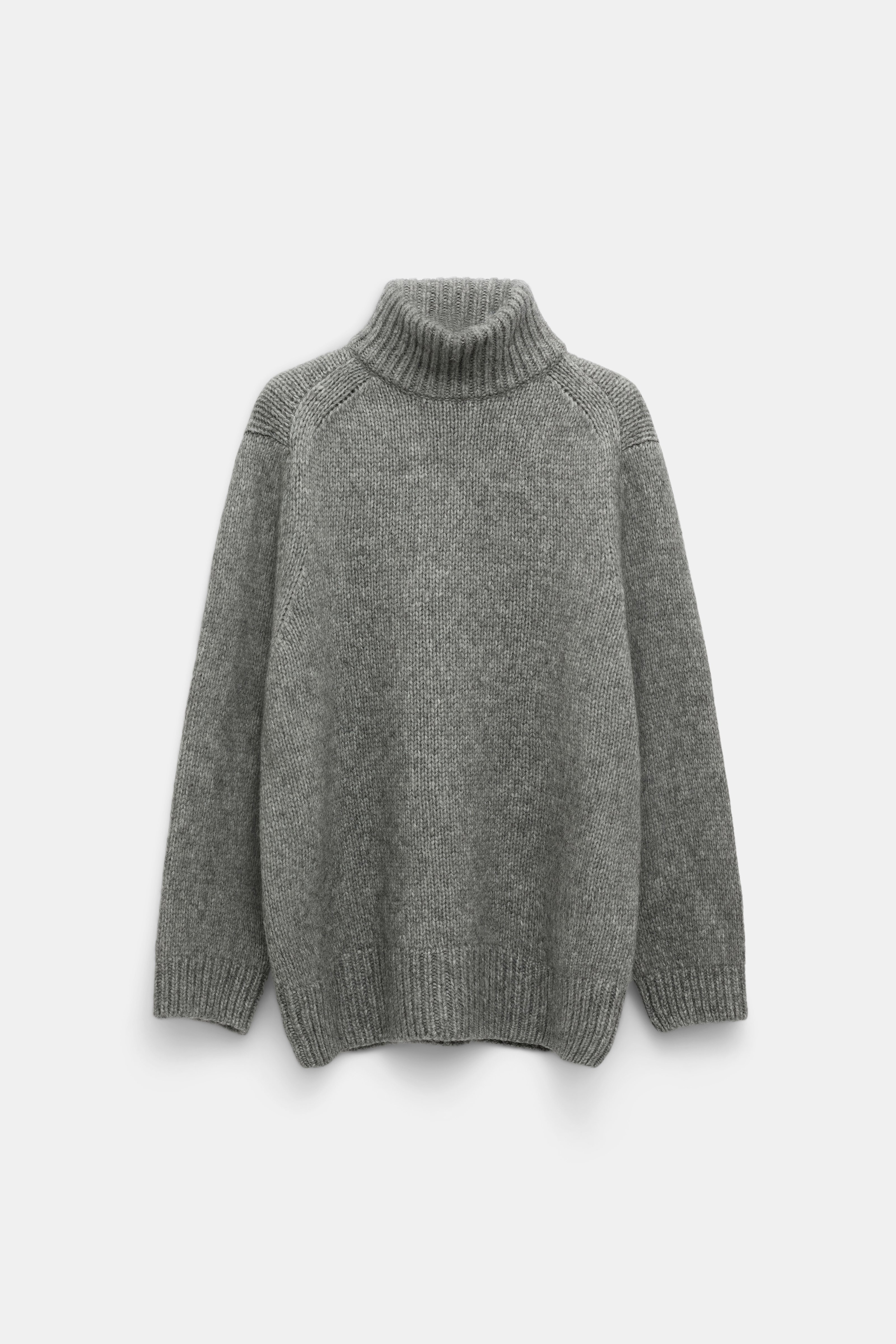 An extra cozy style in alpaca-infused wool, the turtleneck pullover has a relaxed cut and casual dropped shoulders. Material & Care - 40 % Virgin wool (Merino), 36 % Polyamide, 24 % Baby alpaca - Virgin wool-alpaca turtleneck pullover - Knit with new alpaca yarn - Double layer ribbed knit turtleneck - Shoulder seams angle to the front - Hand wash cold / Machine wash old - Wash with similar colors Size & Fit - Our model is 179cm tall and wears a size 2 - Relaxed fit, falls to the hip - Dropped shoulders - Relaxed sleeves