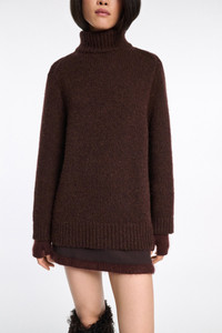 An extra cozy style in alpaca-infused wool, the turtleneck pullover has a relaxed cut and casual dropped shoulders. Material & Care - 40 % Virgin wool (Merino), 36 % Polyamide, 24 % Baby alpaca - Virgin wool-alpaca turtleneck pullover - Knit with new alpaca yarn - Double layer ribbed knit turtleneck - Shoulder seams angle to the front - Hand wash cold / Machine wash old - Wash with similar colors Size & Fit - Our model is 180cm tall and wears a size 2 - Relaxed fit, falls to the hip - Dropped shoulders - Relaxed sleeves