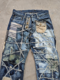 π₯1OF1 KAPITAL SELVEDGE CUSTOM MADE #16 REWORK By TrueDArtisan π₯ β PLEASE REFER MANUAL MEASUREMENT FOR DETAILS β BRAND : KAPITAL MADE IN :- JAPAN WAIST :- 31 LENGTH (OUTSEAM ) : 43.5 inches MATERIAL :COTTON CONDITIONS :- 8.0/10 (custom made condition) CODE :- PERSONAL THIS IS PRELOVED CLOTHING.. PLEASE DONT EXPECT IT TO BE LIKE NEW OR IN PRISTINE CONDITION.PLEASE ENLARGE THE PHOTO FOR CLEARER IMAGE. PLEASE CHECK ACTUAL SIZE CAREFULLY, NO RETURNS OR COMPLAIN FOR WRONG SIZE
