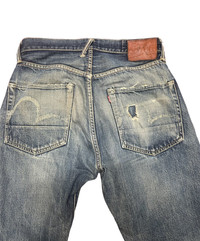 Please read all the description carefully before buying..if you have any questions feel free to ask (check measurements below) Size : please refer to actual measurement given and compared with your best fitting clothes ) Tag read : evisu size - 30-31 Measurements Good used condition : 7/10 distress Please enlarge the photos to get clear image. Measurement taken while laying flat. Waist : 15.5”inches Front rise : 12”inches Tight : 12.5”inches Inseams : 29.5”inches Outseams : 40.5”inches Open leg : 8.5”inches Please compare the measurement with your garment. Kindly read my shipping and policies. Please contact us for Expedited Shipping. PLEASE leave ur "phone number" on the note when making an order. Thanks for dropping by. This USED & Vintage Items, So dont expected it to be like NEW Condition!! All measurements are taken with the garment flat on the ground ATTENTION : Please pay close attention to measurements provided. Do not rely on tag size as pre-worn items may have been altered, stretched or shrunk & vintage sizes do not directly translate the modern sizes.** i will not accept return if u cant fit it.The best way to ensure a correct fit is to compare our measurements with the measurements of a similar item that you know fits you well.Please enlarge the photos for clearer image. ** Please do not expect the shirt in mint condition unless stated.Its because vintage and used items may have sign of wear. Thank you very much for your visit.