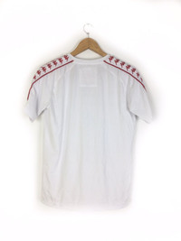 Please read all the description carefully before buying..if you have any questions feel free to ask (check measurements below) Size : please refer to actual measurement given and compared with your best fitting clothes ) Tag read : kappa x rowa size - small Measurements Good used condition : 9/10 Please enlarge the photos to get clear image. Measurement taken while laying flat. Armpit : 19.5"inches Length : 26"inches Please compare the measurement with your garment. Kindly read my shipping and policies. Shipping may takes around 10 days depends on location. PLEASE leave ur "phone number" on the note when making an order. Thanks for dropping by. This USED & Vintage Items, So dont expected it to be like NEW Condition!! All measurements are taken with the garment flat on the ground ATTENTION : Please pay close attention to measurements provided. Do not rely on tag size as pre-worn items may have been altered, stretched or shrunk & vintage sizes do not directly translate the modern sizes.The best way to ensure a correct fit is to compare our measurements with the measurements of a similar item that you know fits you well. And please take note,** i will not accept return if u cant fit it. As i already give my manual measurement. Please enlarge the photos for clearer image. ** Please do not expect the shirt in mint condition unless stated.Its because vintage and used items may have sign of wear. Thank you very much for your visit.