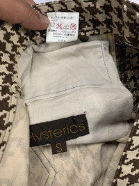 Please read all the description carefully before buying..if you have any questions feel free to ask (check measurements below) Size : please refer to actual measurement given and compared with your best fitting clothes ) Tag read : hysteric glamour size - s Measurements Good used condition : 9/10 Please enlarge the photos to get clear image. Measurement taken while laying flat. Waist : 15”inches Tight : 9.5”inches Inseams : 29.5”inches Outseams : 37”inches Open leg : 5.5”inches Front rise : 7.7”inches Please compare the measurement with your garment. Kindly read my shipping and policies. Please contact us for Expedited Shipping. PLEASE leave ur "phone number" on the note when making an order. Thanks for dropping by. This USED & Vintage Items, So dont expected it to be like NEW Condition!! All measurements are taken with the garment flat on the ground ATTENTION : Please pay close attention to measurements provided. Do not rely on tag size as pre-worn items may have been altered, stretched or shrunk & vintage sizes do not directly translate the modern sizes.** i will not accept return if u cant fit it.The best way to ensure a correct fit is to compare our measurements with the measurements of a similar item that you know fits you well.Please enlarge the photos for clearer image. ** Please do not expect the shirt in mint condition unless stated.Its because vintage and used items may have sign of wear. Thank you very much for your visit.