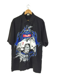 Please read all the description carefully before buying..if you have any questions feel free to ask (check measurements below) Size : please refer to actual measurement given and compared with your best fitting clothes ) Tag read : size - M fits L Measurements Good used condition : 9/10 Please enlarge the photos to get clear image. Measurement taken while laying flat. Armpit : 25”inches Shoulder to shoulder : 21.5”inches Length : 31”inches Please compare the measurement with your garment. Kindly read my shipping and policies. Shipping may takes around 10 days depends on location. PLEASE leave ur "phone number" on the note when making an order. Thanks for dropping by. This USED & Vintage Items, So dont expected it to be like NEW Condition!! All measurements are taken with the garment flat on the ground ATTENTION : Please pay close attention to measurements provided. Do not rely on tag size as pre-worn items may have been altered, stretched or shrunk & vintage sizes do not directly translate the modern sizes.The best way to ensure a correct fit is to compare our measurements with the measurements of a similar item that you know fits you well. And please take note,** i will not accept return if u cant fit it. As i already give my manual measurement. Please enlarge the photos for clearer image. ** Please do not expect the shirt in mint condition unless stated.Its because vintage and used items may have sign of wear. Thank you very much for your visit.