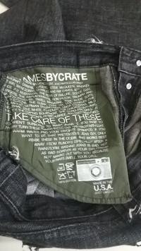 Please read all the description carefully before buying..if you have any questions feel free to ask (check measurements below) Size : please refer to actual measurement given and compared with your best fitting clothes ) Tag read : thejamesbycrate size - 33 Measurements Good used condition : 9/10 Please enlarge the photos to get clear image. Measurement taken while laying flat. Waist : 16.5"inches Inseams : 31"inches Outseams : 40.2"inches Open leg : 8.5"inches Please compare the measurement with your garment. Kindly read my shipping and policies. Shipping may takes 3 to 7 days depends on location. Im using dhl express Please contact us for Expedited Shipping. PLEASE leave ur "phone number" on the note when making an order. Thanks for dropping by. This USED & Vintage Items, So dont expected it to be like NEW Condition!! All measurements are taken with the garment flat on the ground ATTENTION : Please pay close attention to measurements provided. Do not rely on tag size as pre-worn items may have been altered, stretched or shrunk & vintage sizes do not directly translate the modern sizes.The best way to ensure a correct fit is to compare our measurements with the measurements of a similar item that you know fits you well.Please enlarge the photos for clearer image. ** Please do not expect the shirt in mint condition unless stated.Its because vintage and used items may have sign of wear. Thank you very much for your visit.