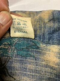 Please read all the description carefully before buying..if you have any questions feel free to ask (check measurements below) Size : please refer to actual measurement given and compared with your best fitting clothes ) Tag read : eternal size - m Measurements Good used condition : 8/10 Please enlarge the photos to get clear image. Measurement taken while laying flat. Armpit : 19.5”inches Shoulder to shoulder : 19”inches Length : 28”inches Please compare the measurement with your garment. Kindly read my shipping and policies. Shipping may takes around 10 days depends on location. PLEASE leave ur "phone number" on the note when making an order. Thanks for dropping by. This USED & Vintage Items, So dont expected it to be like NEW Condition!! All measurements are taken with the garment flat on the ground ATTENTION : Please pay close attention to measurements provided. Do not rely on tag size as pre-worn items may have been altered, stretched or shrunk & vintage sizes do not directly translate the modern sizes.The best way to ensure a correct fit is to compare our measurements with the measurements of a similar item that you know fits you well. And please take note,** i will not accept return if u cant fit it. As i already give my manual measurement. Please enlarge the photos for clearer image. ** Please do not expect the shirt in mint condition unless stated.Its because vintage and used items may have sign of wear. Thank you very much for your visit.