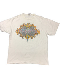 Please read all the description carefully before buying..if you have any questions feel free to ask (check measurements below) Size : please refer to actual measurement given and compared with your best fitting clothes ) Tag read : oneita size - xl Measurements Good used condition : 8/10 Please enlarge the photos to get clear image. Measurement taken while laying flat. Armpit : 23”inches Shoulder to shoulder : 22”inches Length : 29”inches Please compare the measurement with your garment. Kindly read my shipping and policies. Shipping may takes around 10 days depends on location. PLEASE leave ur "phone number" on the note when making an order. Thanks for dropping by. This USED & Vintage Items, So dont expected it to be like NEW Condition!! All measurements are taken with the garment flat on the ground ATTENTION : Please pay close attention to measurements provided. Do not rely on tag size as pre-worn items may have been altered, stretched or shrunk & vintage sizes do not directly translate the modern sizes.The best way to ensure a correct fit is to compare our measurements with the measurements of a similar item that you know fits you well. And please take note,** i will not accept return if u cant fit it. As i already give my manual measurement. Please enlarge the photos for clearer image. ** Please do not expect the shirt in mint condition unless stated.Its because vintage and used items may have sign of wear. Thank you very much for your visit.