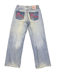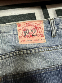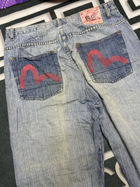 Please read all the description carefully before buying..if you have any questions feel free to ask (check measurements below) Size : please refer to actual measurement given and compared with your best fitting clothes ) Tag read : evisu size - Measurements Good used condition : 7/10 have stain Please enlarge the photos to get clear image. Measurement taken while laying flat. Waist : 17"inches Front rise : 13”inches Tight : 14.5”inches Inseams : 32”inches Outseams : 44”inches Open leg : 10”inches Please compare the measurement with your garment. Kindly read my shipping and policies. Please contact us for Expedited Shipping. PLEASE leave ur "phone number" on the note when making an order. Thanks for dropping by. This USED & Vintage Items, So dont expected it to be like NEW Condition!! All measurements are taken with the garment flat on the ground ATTENTION : Please pay close attention to measurements provided. Do not rely on tag size as pre-worn items may have been altered, stretched or shrunk & vintage sizes do not directly translate the modern sizes.** i will not accept return if u cant fit it.The best way to ensure a correct fit is to compare our measurements with the measurements of a similar item that you know fits you well.Please enlarge the photos for clearer image. ** Please do not expect the shirt in mint condition unless stated.Its because vintage and used items may have sign of wear. Thank you very much for your visit.