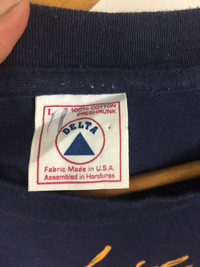 Please read all the description carefully before buying..if you have any questions feel free to ask (check measurements below) Size : please refer to actual measurement given and compared with your best fitting clothes ) Tag read : delta single stiched size - L Measurements Good used condition : 7/10 Please enlarge the photos to get clear image. Measurement taken while laying flat. Armpit : 23”inches Shoulder to shoulder : 22”inches Length : 30”inches Sleeve length from shoulder : "inches Please compare the measurement with your garment. Kindly read my shipping and policies. Shipping may takes around 10 days depends on location. PLEASE leave ur "phone number" on the note when making an order. Thanks for dropping by. This USED & Vintage Items, So dont expected it to be like NEW Condition!! All measurements are taken with the garment flat on the ground ATTENTION : Please pay close attention to measurements provided. Do not rely on tag size as pre-worn items may have been altered, stretched or shrunk & vintage sizes do not directly translate the modern sizes.The best way to ensure a correct fit is to compare our measurements with the measurements of a similar item that you know fits you well. And please take note,** i will not accept return if u cant fit it. As i already give my manual measurement. Please enlarge the photos for clearer image. ** Please do not expect the shirt in mint condition unless stated.Its because vintage and used items may have sign of wear. Thank you very much for your visit.