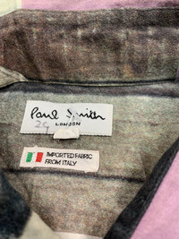 Please read all the description carefully before buying..if you have any questions feel free to ask (check measurements below) Size : please refer to actual measurement given and compared with your best fitting clothes ) Tag read : paul smith size - L Measurements Good used condition : 7/10 have fadep colour at back sleeve refer pic Please enlarge the photos to get clear image. Measurement taken while laying flat. Armpit : 24”inches Shoulder to shoulder : 20.5”inches Length : 29”inches Sleeve length : 23”inches Please compare the measurement with your garment. Kindly read my shipping and policies. Please contact us for Expedited Shipping. PLEASE leave ur "phone number" on the note when making an order. Thanks for dropping by. This USED & Vintage Items, So dont expected it to be like NEW Condition!! All measurements are taken with the garment flat on the ground ATTENTION : Please pay close attention to measurements provided. Do not rely on tag size as pre-worn items may have been altered, stretched or shrunk & vintage sizes do not directly translate the modern sizes.The best way to ensure a correct fit is to compare our measurements with the measurements of a similar item that you know fits you well. And please take note,** i will not accept return if u cant fit it. As i already give my manual measurement. Please enlarge the photos for clearer image. ** Please do not expect the shirt in mint condition unless stated.Its because vintage and used items may have sign of wear. Thank you very much for your visit.