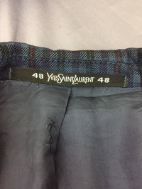 Please read all the description carefully before buying..if you have any questions feel free to ask (check measurements below) Size : please refer to actual measurement given and compared with your best fitting clothes ) Tag read : yves saint laurent size - 48 Measurements Good used condition : 48 Please enlarge the photos to get clear image. Measurement taken while laying flat. Armpit : 21"inches Shoulder to shoulder : 18"inches Length : 30"inches Sleeve length from shoulder : 23.5"inches Please compare the measurement with your garment. Kindly read my shipping and policies. Shipping may takes 3 to 7 days depends on location. Im using dhl express Please contact us for Expedited Shipping. PLEASE leave ur "phone number" on the note when making an order. Thanks for dropping by. This USED & Vintage Items, So dont expected it to be like NEW Condition!! All measurements are taken with the garment flat on the ground ATTENTION : Please pay close attention to measurements provided. Do not rely on tag size as pre-worn items may have been altered, stretched or shrunk & vintage sizes do not directly translate the modern sizes.The best way to ensure a correct fit is to compare our measurements with the measurements of a similar item that you know fits you well. And please take note,** i will not accept return if u cant fit it. As i already give my manual measurement. Please enlarge the photos for clearer image. ** Please do not expect the shirt in mint condition unless stated.Its because vintage and used items may have sign of wear. Thank you very much for your visit.