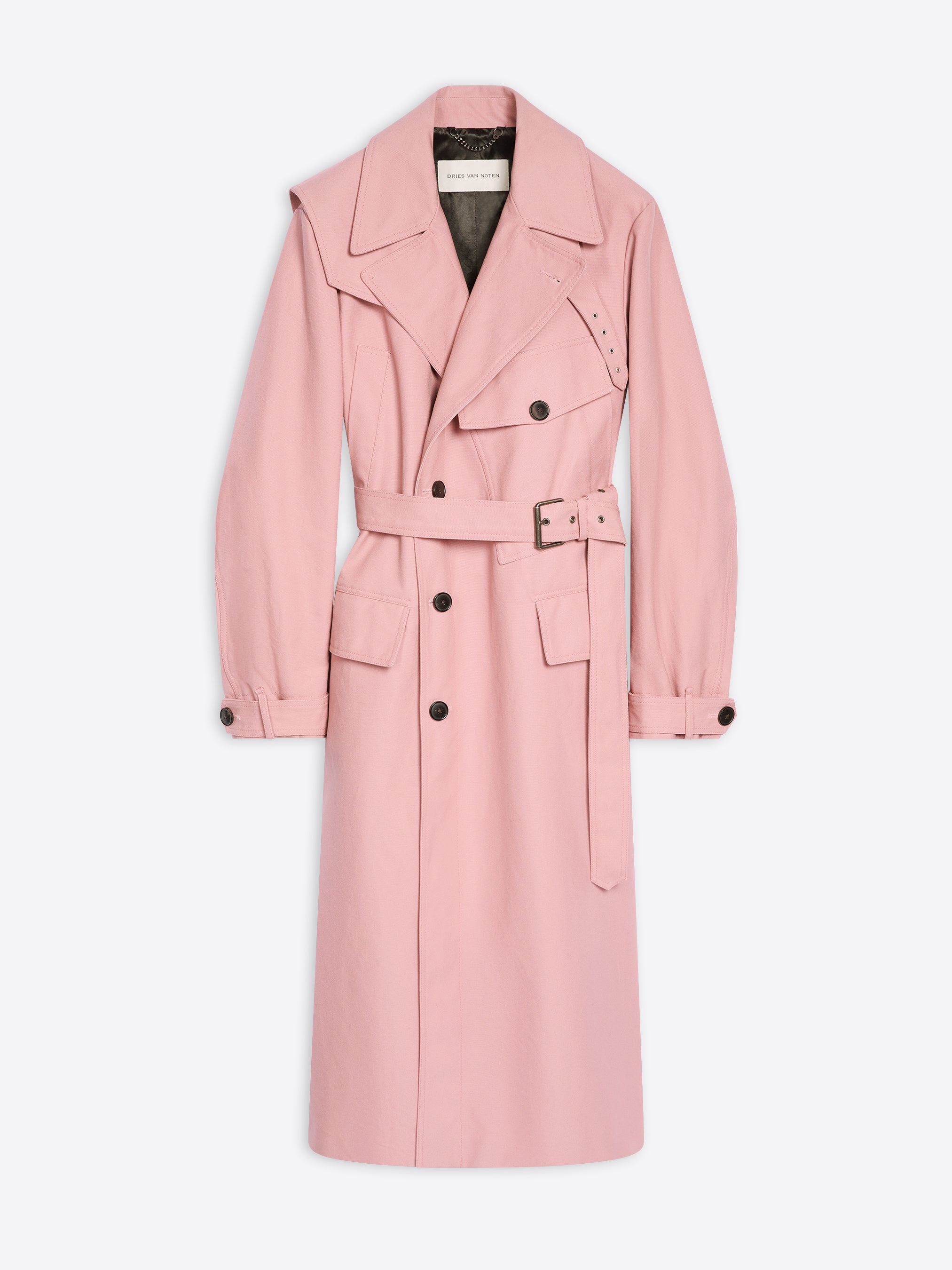 Regular fit belted trench coat in dyed cotton canvas, with back storm flap. DETAILS - 100% Cotton. Lining: 60% Cupro, 40% Cotton. - Back storm flap. Comes with shoelace belt. - Regular fit. Front flap pockets, patch pocket at chest and upper slit pockets with side openings. Buttoned cuffs. Single vent. Belted. Front button closure. - Ref: 252-020245-2366 SIZE AND FIT Model is 189 cm / 74.5 inches and wears size M.