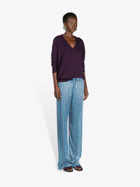 Fitted drawstring pants in viscose and silk devore with diagonal stripe pattern. DETAILS - 60% Viscose, 40% Silk. - Viscose and silk devore with contrast striped pattern. - Tight fit. Low rise. Drawstring waistband. - Ref: 261-130908-3149 SIZE AND FIT Model is 178 cm / 70 inches and wears size 34.