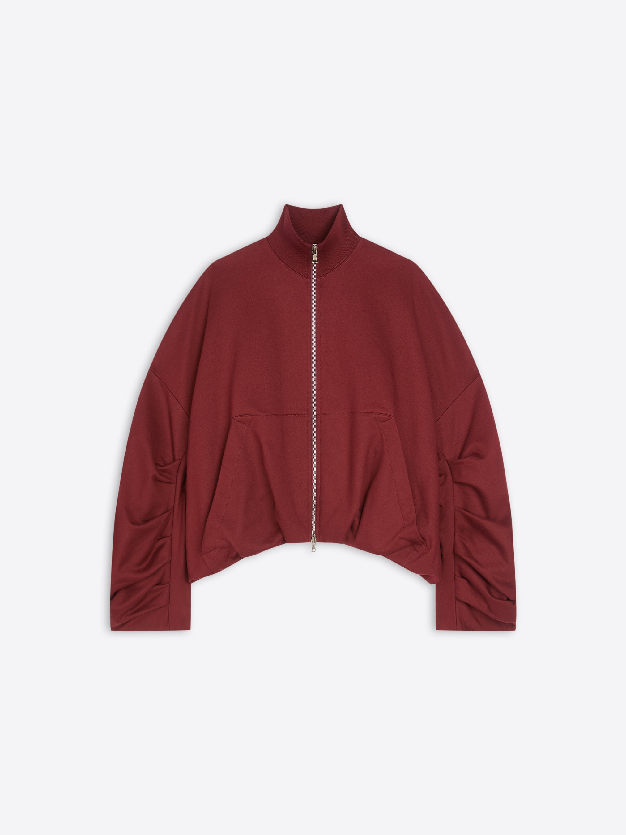 Oversized zipped jacket in cotton jersey, with funnel neck and draping. DETAILS - 100% Cotton. - Oversized fit. Tailored cut. Pleated gathered sleeves. Front two-way zip closure. - Ref: 252-011129-2611 SIZE AND FIT Model is 178 cm / 70 inches and wears size M.